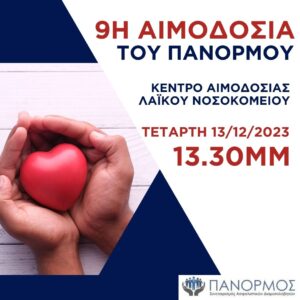 Πιστός στο ραντεβού του ο ΠΑΝΟΡΜΟΣ διοργανώνει την 9η Εθελοντική Αιμοδοσία τη Τετάρτη, 13 Δεκεμβρίου 2023, στη 13:30 μ.μ., στο κέντρο Αιμοδοσίας του Λαϊκού Νοσοκομείου (Αγίου Θωμά 17, Γουδί, Αθήνα). Η Χριστουγεννιάτικη περίοδος χαρακτηρίζεται από την αλληλεγγύη και την αγάπη για τον συνάνθρωπο. Μην διστάσετε! Η συνεισφορά σας θα βοηθήσει άτομα που το έχουν ανάγκη, ενώ η δωρεά σας θα δώσει ελπίδα και χαρά σε αυτούς και στις οικογένειες τους!